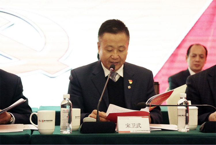 湖南航天副总经理宋卫武代表中共恒峰国际环保临时总支部委员会向大会作了题为《不忘初心 牢记使命为实现恒峰国际百亿目标而努力奋斗》的工作报告。